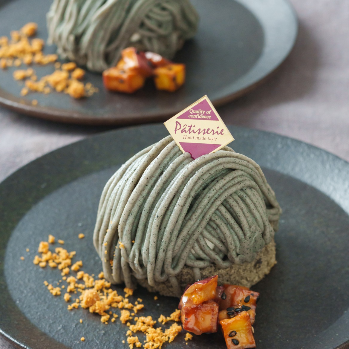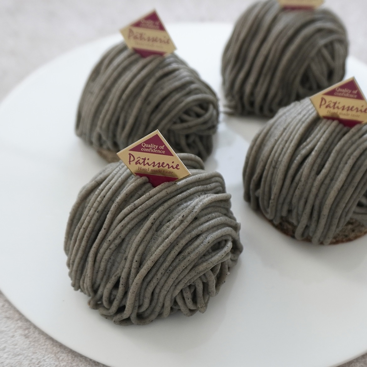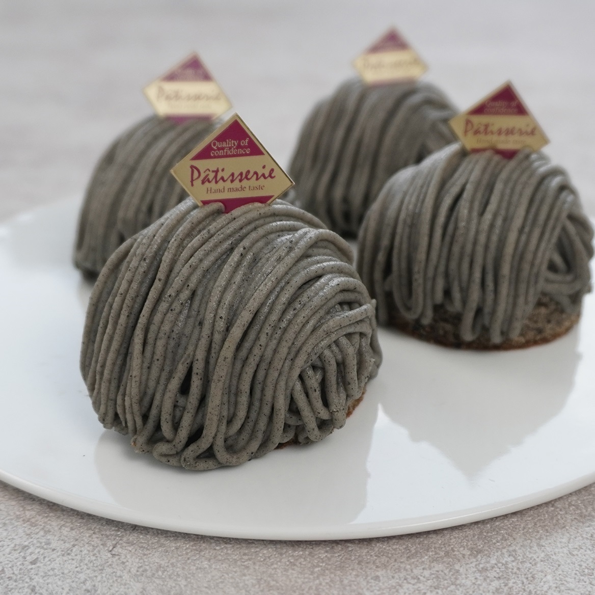 モンブランクリームとスポンジに、黒ゴマペーストをふんだんに使用しました。 一口食べると黒ゴマ本来の香りが広がり、コク深い味わいがお楽しみいただけます。 ごまスイーツ好きには堪らない、芳ばしい黒ゴマ風味の和モンブランです。 可愛らしいピック付きで、おうちカフェを演出も♪