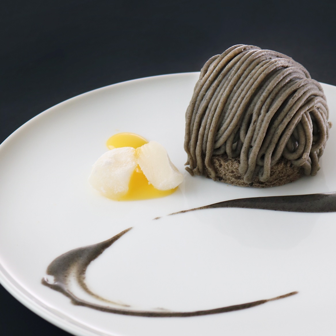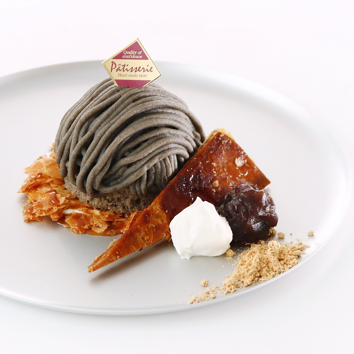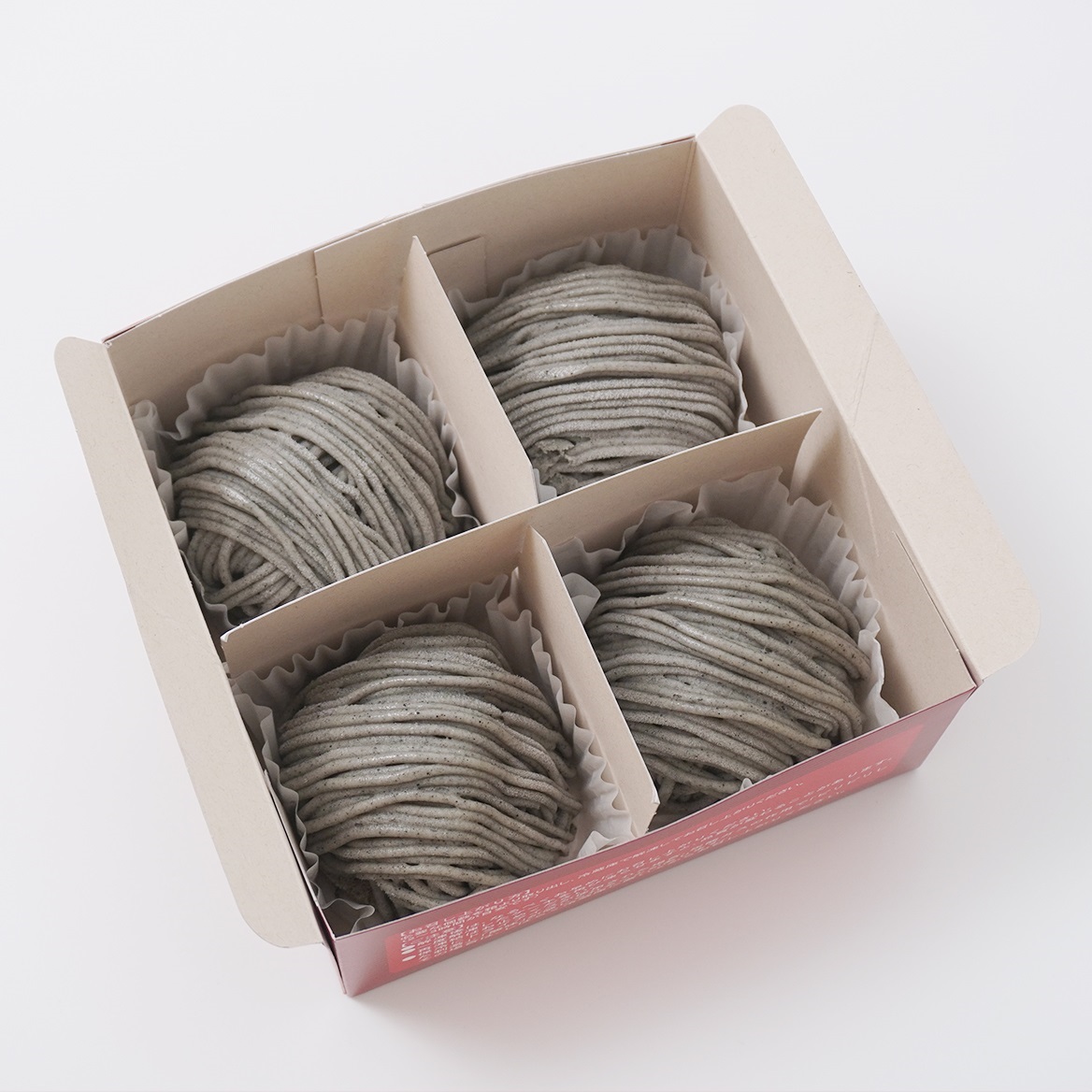 モンブランクリームとスポンジに、黒ゴマペーストをふんだんに使用しました。 一口食べると黒ゴマ本来の香りが広がり、コク深い味わいがお楽しみいただけます。 ごまスイーツ好きには堪らない、芳ばしい黒ゴマ風味の和モンブランです。 可愛らしいピック付きで、おうちカフェを演出も♪